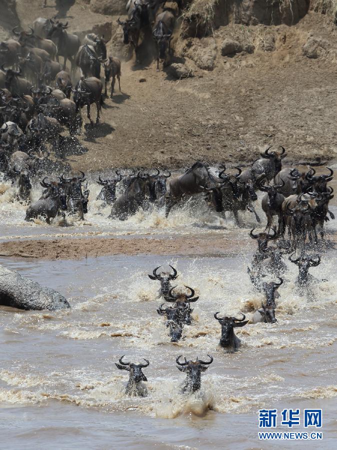 這是8月17日在坦桑尼亞塞倫蓋蒂國家公園內(nèi)拍攝的角馬遷徙隊(duì)伍。每年7月至9月是坦桑尼亞的旱季,為了追逐水源和青草,以角馬和斑馬為主的數(shù)以百萬計(jì)的食草動物從塞倫蓋蒂向肯尼亞馬賽馬拉遷徙。這場“地球上最壯觀的動物大遷徙”全程超過1000公里,動物在往返途中需兩次渡過鱷魚出沒、危機(jī)重重的馬拉河。新華社記者張平攝