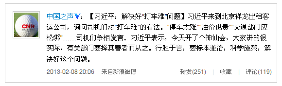 【習(xí)近平:解決好“打車(chē)難”問(wèn)題】習(xí)近平來(lái)到北京祥龍出租客運(yùn)公司,詢問(wèn)司機(jī)們對(duì)“打車(chē)難”的看法?!巴\?chē)太難”“油價(jià)也貴”“交通部門(mén)應(yīng)松綁”……司機(jī)們爭(zhēng)相發(fā)言。習(xí)近平表示,今天開(kāi)了個(gè)神仙會(huì),大家講的很實(shí)際,有關(guān)部門(mén)要擇其善者而從之。行勝于言,要標(biāo)本兼治,科學(xué)施策,解決好這個(gè)問(wèn)題。