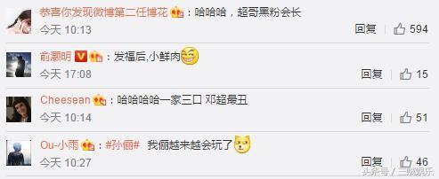 自家粉絲紛紛表示“娘娘公開懟你,哈哈哈”“一家三口 鄧超最丑”