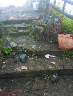 另據(jù)隊(duì)長羅燦輝在山頂上察看發(fā)現(xiàn),山頂有多塊巨石被雷電擊碎散落在地面上。其中有一塊被擊碎的巨石,后經(jīng)證實(shí),就是事發(fā)時(shí)王女士所站的區(qū)域。