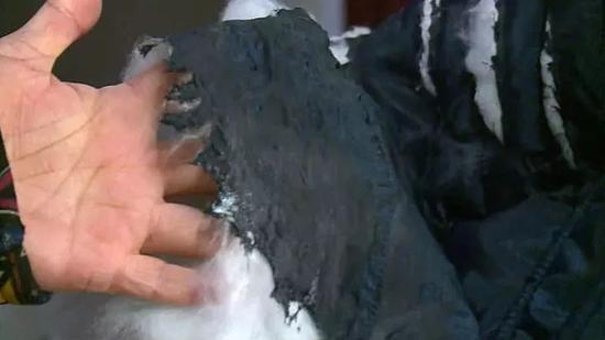 老人家告訴我們,一大早他和老伴收拾行李準備去鄉(xiāng)下,在廚房里拾掇的老伴身上羽絨衣突然爆炸,衣服背面出現了好幾個大窟窿,索性人沒有大礙。