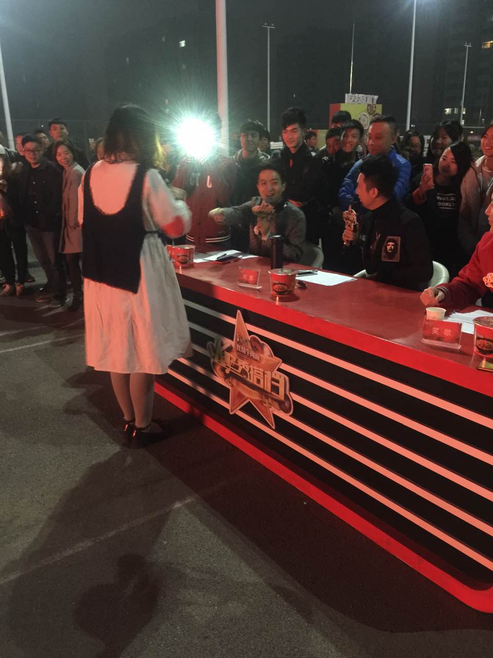 整場海選持續(xù)到天黑,非常有趣的是,可能是大家剛開始都持觀望態(tài)度,臨近天黑的時候,真正的好聲音才開始登上舞臺,比賽的十強幾乎都產(chǎn)生在最后上場的十位選手中,評委現(xiàn)場不僅在盲選,而且在不斷的更新五強的名單,以至于,最后覺得只選五強臺可惜了,在和導(dǎo)演組商議之后,晉級名額直接增加到了十個。他們將和前五場康師傅紅燒牛肉面《名嘴K歌秀》校園海選選拔出來的選手一起,參加《名嘴K歌秀》第三季,獲得和名嘴演唱的機會。
