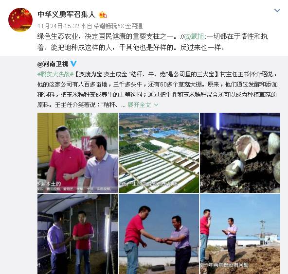 網(wǎng)友“中華義勇軍召集人”評論說:綠色生態(tài)農(nóng)業(yè),決定國民健康的重要支柱之一。