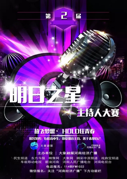 3、大賽前三十名選手將成為河南經(jīng)濟(jì)廣播特約主持人。