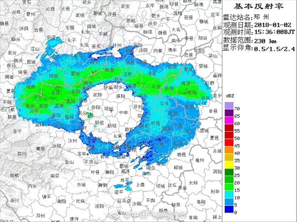1月2日下午,一張鄭州上空出現(xiàn)“雪洞”的圖片就在朋友圈微博廣泛傳播,并配文:“下午的雷達回波圖上,鄭州上空出現(xiàn)零度層亮帶。鄭州上空出現(xiàn)‘雪洞’,這是連續(xù)降雪的征兆,河南大雪在即。”今天(1月3日),記者從河南省氣象臺了解到,網(wǎng)傳“雪洞” 是不清楚雷達探測原理,說法并不正確。