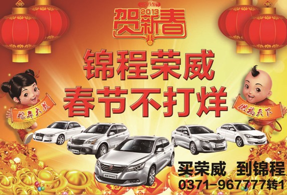 新春佳節(jié)到來(lái)之際,小編從河南錦程汽車銷售服務(wù)有限公司了解到,河南錦程榮威春節(jié)不打烊,和您一起過(guò)共度佳節(jié)。春節(jié)期間2月9日(除夕)-16日(初七),凡購(gòu)車客戶均可獲得錦程送出的新春大禮包——年貨。錦程榮威推出了易享貸,更有超實(shí)惠兩年半零利息上汽金融政策,助您開(kāi)車過(guò)年。更多優(yōu)惠車型請(qǐng)咨詢:0371--967777轉(zhuǎn)1.