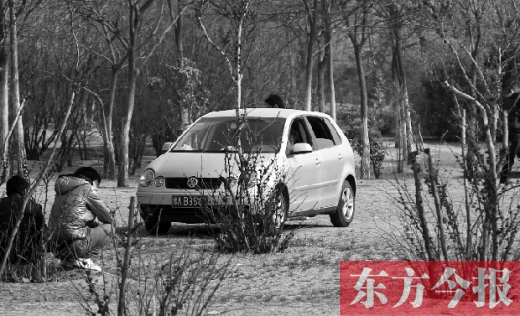 記者還發(fā)現(xiàn),有的游人將汽車開進(jìn)草坪后,在草坪上鋪張報(bào)紙,席地而坐,有的三五成群聚在一起,打起撲克。