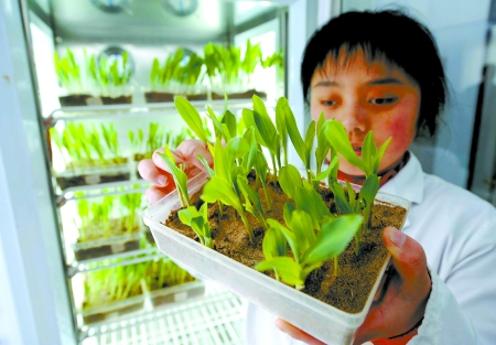3月27日,??h種子站工作人員在查看光照培養(yǎng)箱里培養(yǎng)的種苗。近年來,??h實(shí)施“科技興糧”戰(zhàn)略,糧食生產(chǎn)連年獲得豐收。目前,浚縣100多萬(wàn)畝小麥長(zhǎng)勢(shì)良好。 新華社發(fā)