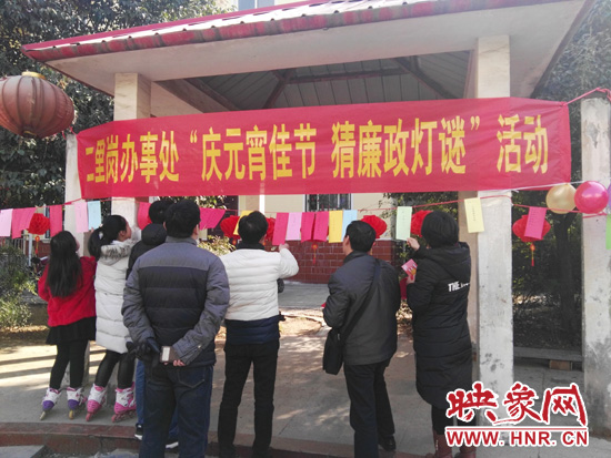 映象網(wǎng)訊(記者 盧攀登 通訊員 單發(fā)洲 劉鵬英)為推進(jìn)廉政文化建設(shè),豐富群眾文化生活,2月9日下午,二里崗辦事處紫云社區(qū)開展了一場(chǎng)別開生面的“鬧元宵思廉潔——廉政燈謎大家猜”廉政文化進(jìn)社區(qū)活動(dòng),吸引了來自轄區(qū)近百名群眾前來參加。