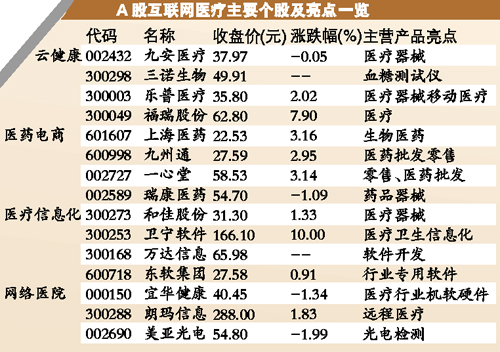 有機構(gòu)人士表示,下一個金礦可能是互聯(lián)網(wǎng)同醫(yī)院、醫(yī)藥、藥房等醫(yī)療領(lǐng)域的聯(lián)姻。記者統(tǒng)計發(fā)現(xiàn),天堂硅谷、紅杉資本、云峰基金、力合創(chuàng)投等一大批私募和PE們都已提前布局互聯(lián)網(wǎng)醫(yī)療。在A股市場上,部分互聯(lián)網(wǎng)醫(yī)療潛力股投資者可適當(dāng)關(guān)注。