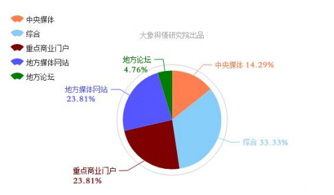 上圖可以看出,關注此事件的網(wǎng)絡媒體中,綜合類網(wǎng)站傳播活躍度最高,重點商業(yè)門戶網(wǎng)站和地方媒體網(wǎng)站旗鼓相當、緊隨其后。