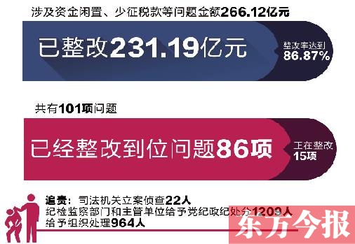 從問(wèn)題金額看,審計(jì)工作報(bào)告中涉及資金閑置、少征稅款等問(wèn)題金額266.12億元,已經(jīng)整改231.19億元,整改率達(dá)到86.87%。 從問(wèn)題數(shù)量看,審計(jì)工作報(bào)告中共有101項(xiàng)問(wèn)題,已經(jīng)整改到位問(wèn)題86項(xiàng),正在整改15項(xiàng)。 據(jù)悉,對(duì)于審計(jì)移送的違法違規(guī)問(wèn)題,司法機(jī)關(guān)立案?jìng)刹?2人,紀(jì)檢監(jiān)察部門和主管單位給予黨紀(jì)政紀(jì)處分1209人,給予組織處理964人。其中,對(duì)企業(yè)或個(gè)人騙取生活補(bǔ)貼資金問(wèn)題,市縣監(jiān)察機(jī)關(guān)、業(yè)務(wù)主管部門在收回補(bǔ)貼資金1970萬(wàn)元的同時(shí),給予當(dāng)事人、有關(guān)經(jīng)辦人員黨紀(jì)政紀(jì)處分299人,給予誡勉談話等組織處理219人。(記者 梁新慧)