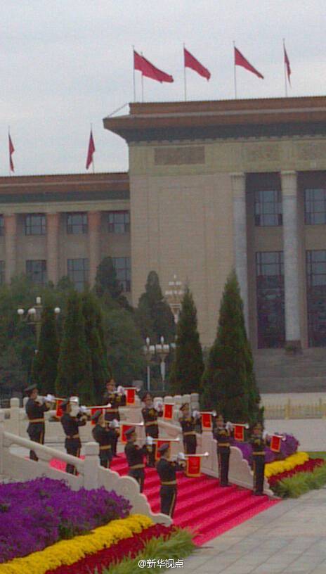 新華網(wǎng)北京9月30日電 據(jù)新華社“新華視點”微博報道,今天是國家設(shè)立的首個烈士紀念日,正值新中國成立65周年之際。上午,習近平、李克強、張德江、俞正聲、劉云山、王岐山、張高麗等來到天安門廣場,與首都各界代表一起,出席向人民英雄敬獻花籃儀式。
