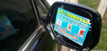 據(jù)鄭州市民劉先生報料,昨天下午兩點多,在鄭州市建業(yè)路建業(yè)花園小區(qū),開車的時候發(fā)現(xiàn)愛車的后視鏡被貼上了不干膠的小廣告.“尼瑪!害得我在寒風(fēng)中半個小時還沒有清干凈……”你還見過、遇到過哪些奇葩的、令人想罵人的小廣告呢?
