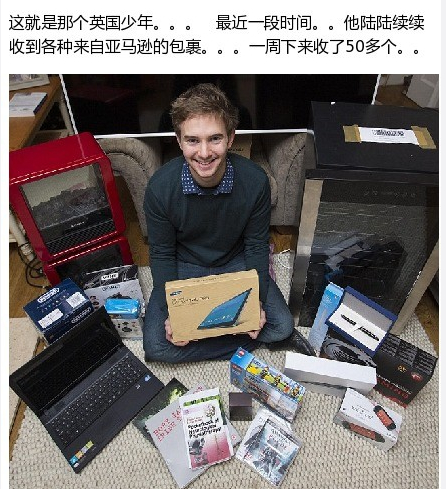 英國有個少年很煩惱。近一周他陸續(xù)收到50多個來自亞馬遜寄錯給他的包裹。忐忑之下,他給亞馬遜的客服打了電話。亞馬遜:啊對不起,是我們弄錯了,給你寄了那么多,給你添麻煩了。你就全部留下吧,我們不要了...有點爽...