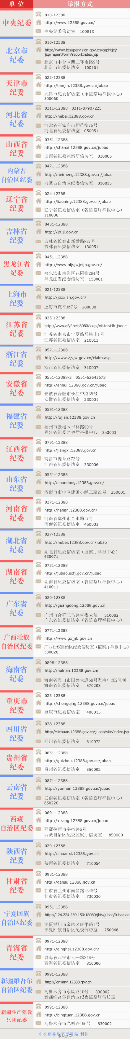 附:中紀委公布各地紀委聯(lián)系方式
