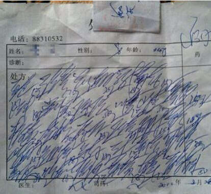 @陸心遠(yuǎn):其實(shí)醫(yī)生寫病例單開藥單在過去是有規(guī)定的,防止藥方外泄,故寫的比較草,還有醫(yī)生貌似以前用的都是拉丁文吧,這不是最神奇的,而是抓藥的居然都認(rèn)識醫(yī)生的字,這最恐怖!