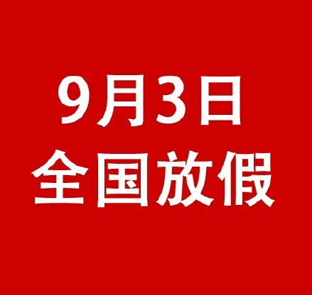 1、9月3日全國放假一天!