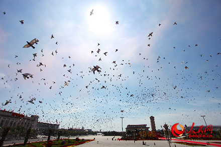 人民網(wǎng)北京9月4日電 9月3日,中國(guó)人民抗日戰(zhàn)爭(zhēng)暨世界反法西斯戰(zhàn)爭(zhēng)勝利70周年紀(jì)念大會(huì)在北京舉行。千人合唱團(tuán)吼出氣勢(shì)恢宏的抗戰(zhàn)歌,威武三軍昂首正步走過(guò)天安門廣場(chǎng),抗戰(zhàn)老兵神情鄭重再敬軍禮,規(guī)??涨暗目罩刑蓐?duì)拉起勝利彩虹.....回顧閱兵中的種種細(xì)節(jié),你是否仍然心緒難平?