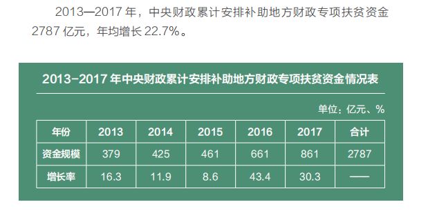 今年,中央財政預(yù)算擬安排補助地方專項扶貧資金 1061 億元,首次突破千億元規(guī)模。中央財政新增扶貧投入及有關(guān)轉(zhuǎn)移支付向深度貧困地區(qū)傾斜。