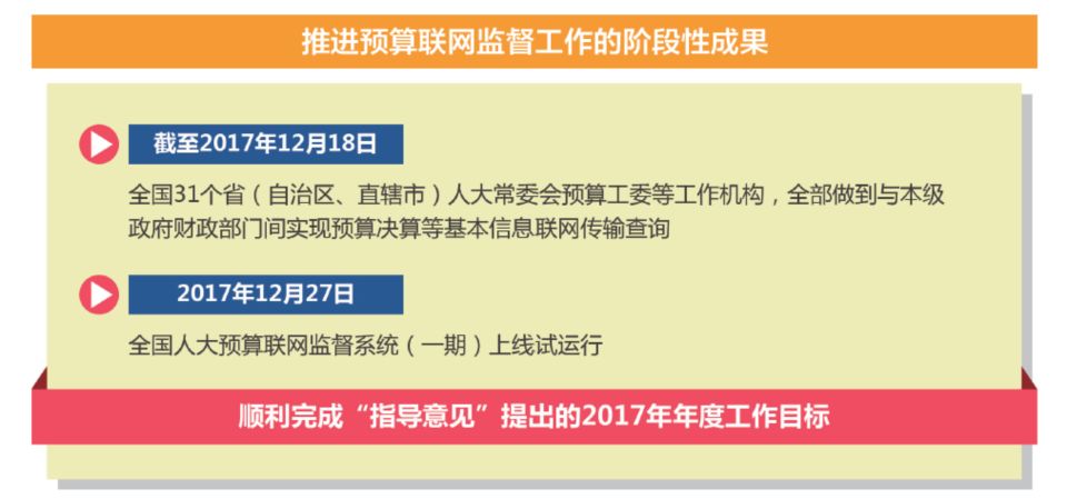 此外,全國人大還著力推進預(yù)算聯(lián)網(wǎng)監(jiān)督工作,更好地打造“陽光財政”。通過網(wǎng)絡(luò)傳輸報送、提供聯(lián)網(wǎng)查詢,實現(xiàn)預(yù)算審查監(jiān)督信息化和網(wǎng)絡(luò)化,提升預(yù)算審查監(jiān)督內(nèi)容的詳實性和時效性,增強預(yù)算審查監(jiān)督的針對性和有效性,推進財政信息公開透明和預(yù)算行為規(guī)范有序。目前,推進預(yù)算聯(lián)網(wǎng)監(jiān)督工作已經(jīng)取得階段性成果。