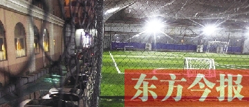 樓頂球場(chǎng)早早亮起了等,等待踢球人的到來(lái)