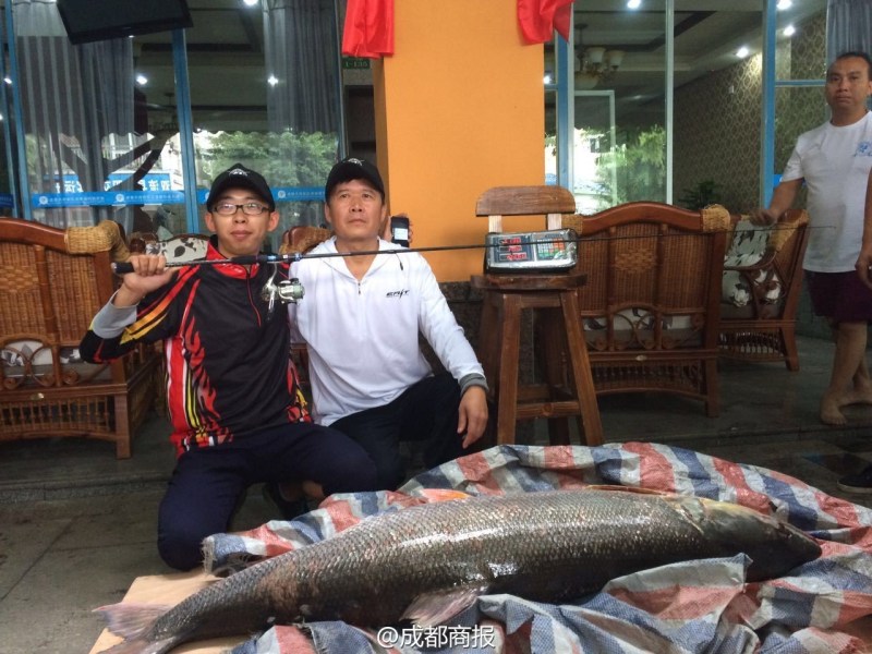 這個(gè)大家伙是什么魚?53歲的劉躍軍和29歲的劉晨都沒見過,他們都有近10年的釣魚經(jīng)驗(yàn),三岔湖當(dāng)?shù)厝艘矝]見過。“是鳡魚!”一位釣友說。記者在網(wǎng)上查詢發(fā)現(xiàn),此魚外形確實(shí)與鳡魚的照片非常像,應(yīng)該是同一品種。隨后,多位資深漁友也表示,此魚確為鳡魚。據(jù)了解,鳡魚并非四川原生態(tài)魚種,是一種主要以小型魚類為食的兇猛魚類。鳡魚最大個(gè)體長(zhǎng)達(dá)2米,重可達(dá)60公斤?!搬炂鹑绱舜蟮聂~,在四川釣魚界也極為罕見?!辟Y深漁友說。(成都商報(bào)記者 鎖千程 實(shí)習(xí)生 任毅 攝影報(bào)道)