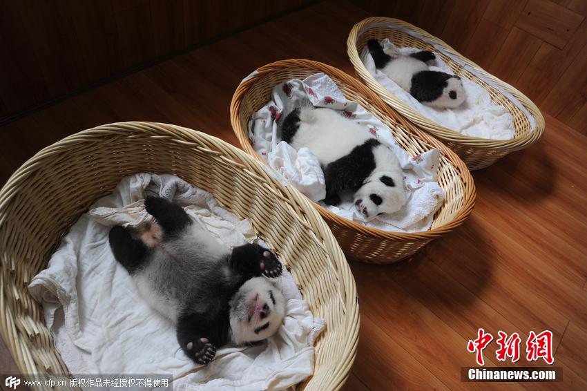 酣睡中的熊貓寶寶們。2015年大熊貓產(chǎn)仔形勢(shì)喜人,特別是大熊貓雙胞胎數(shù)量,已經(jīng)達(dá)到7對(duì),是研究中心有記錄以來(lái)雙胞胎數(shù)量最多的一年。 圖片來(lái)源:CFP視覺(jué)中國(guó)