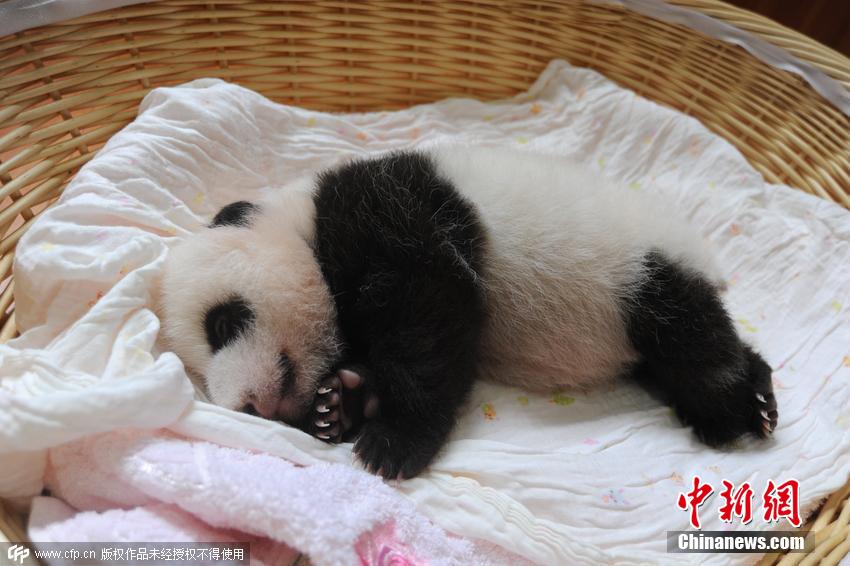 2015年8月21日,四川雅安,中國(guó)保護(hù)大熊貓研究中心基地內(nèi),今年新生大熊貓寶寶首次亮相。2015年出生的在進(jìn)行人工育幼的有十只大熊貓寶寶,它們中最大的剛滿(mǎn)兩月,最小的不足一周。 圖片來(lái)源:CFP視覺(jué)中國(guó)