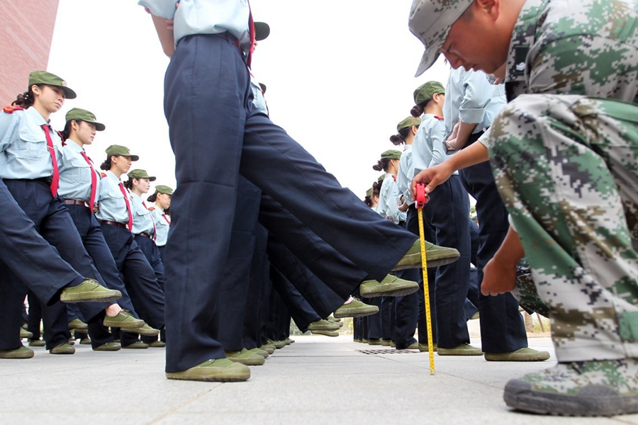 在大家普遍的印象里,學(xué)生軍訓(xùn)主要就是練隊(duì)列、踢正步等,最多還有軍體拳、步槍射擊。昨天上午,記者在鄭州航空工業(yè)管理學(xué)院軍訓(xùn)現(xiàn)場(chǎng)發(fā)現(xiàn),該院在站軍姿、踢正步等軍訓(xùn)項(xiàng)目上,引入卷尺、純凈水瓶等“裝備”,而且為“準(zhǔn)空姐”訓(xùn)練的課目中,還增加了如何盤(pán)發(fā)等項(xiàng)目。