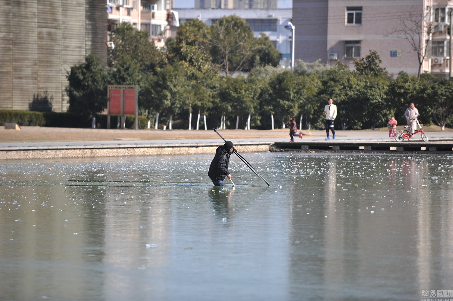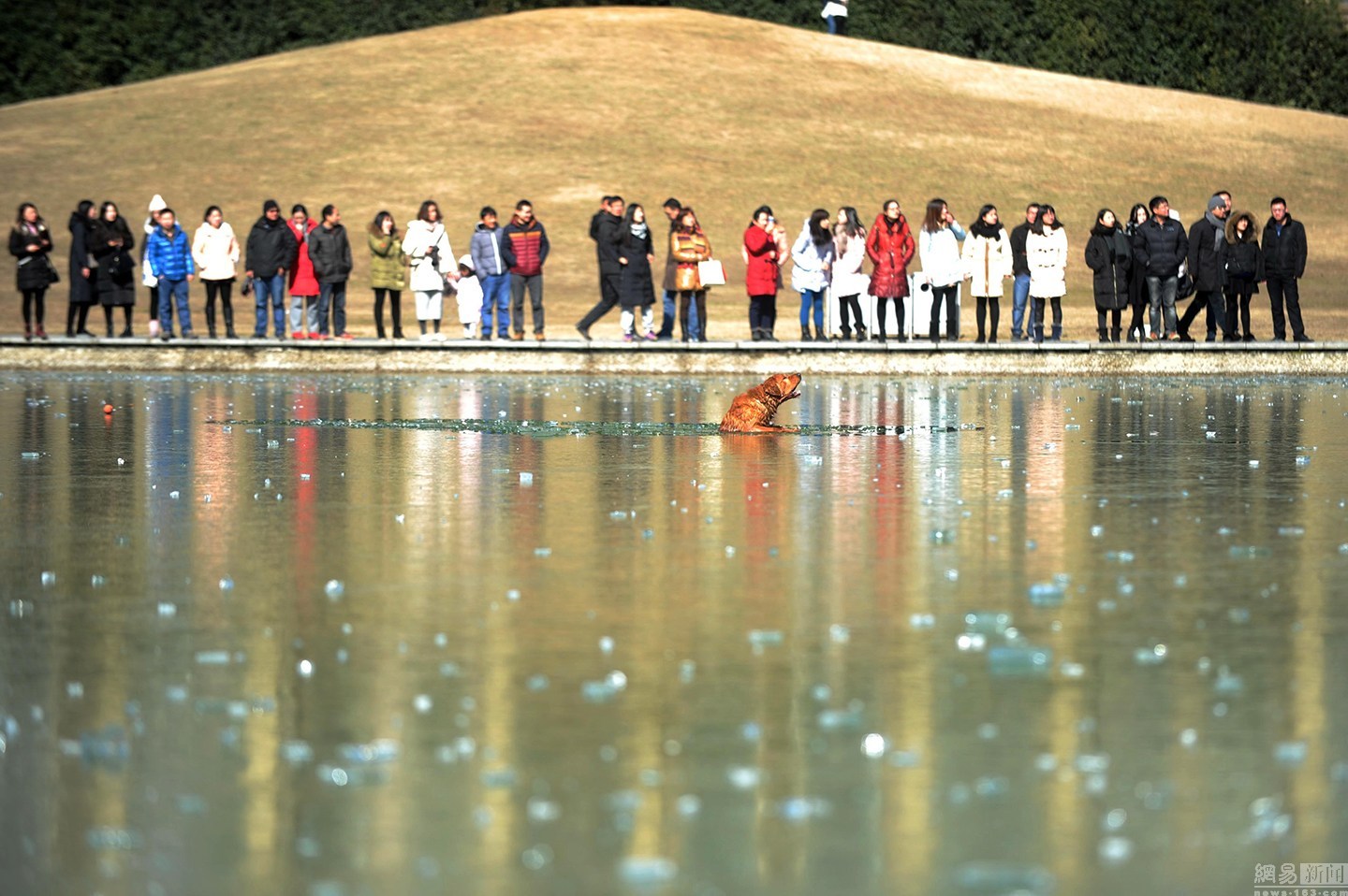 2016年1月25日中午12時30分許,安徽合肥市民項先生正好在賴少其藝術(shù)館附近辦事,突然他發(fā)現(xiàn)一只大金毛被卡在藝術(shù)館門口的冰面中,一直在掙扎。