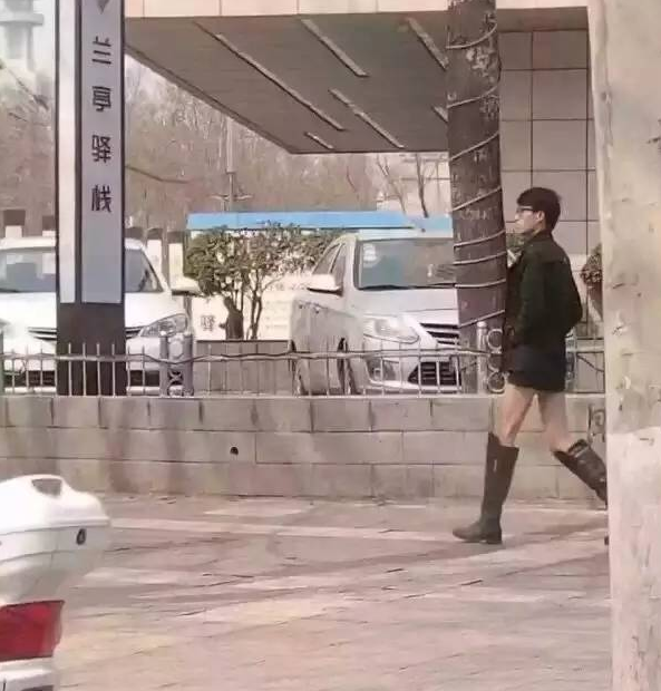 網(wǎng)友對(duì)此評(píng)論:春天來(lái)了,焦作礦山崗樓蘭亭驛站門口,某位大哥已經(jīng)迫不及待換上了春裝。