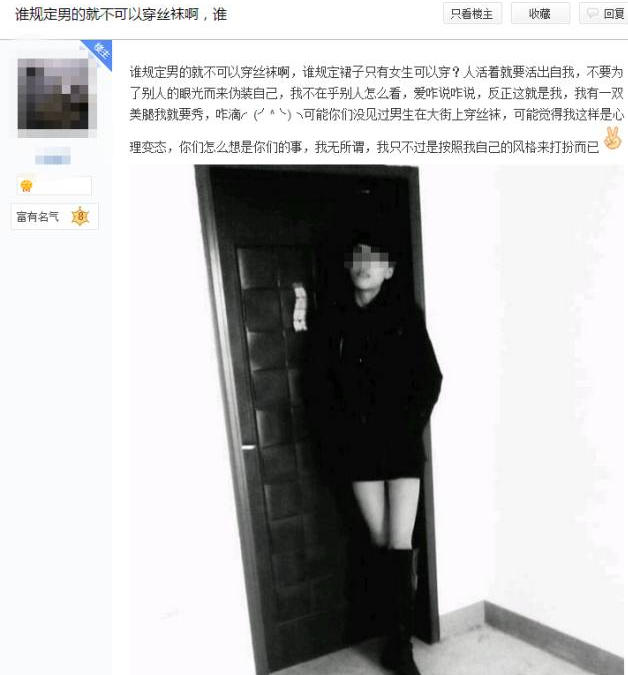 好吧,小編還是第一次見(jiàn)到這位網(wǎng)紅,難免心情有些小激動(dòng)。畢竟每個(gè)人都有一顆愛(ài)美的心和追求美的權(quán)利。只是這位小伙很“勇敢”的表達(dá)出了自己內(nèi)最深處的想法和最真實(shí)真是的自我。對(duì)此,小編只想說(shuō):請(qǐng)收下我的膝蓋!實(shí)在是佩服佩服!最后,也祝愿這位小伙早日找到能夠陪伴自己相愛(ài)一生的伴侶。