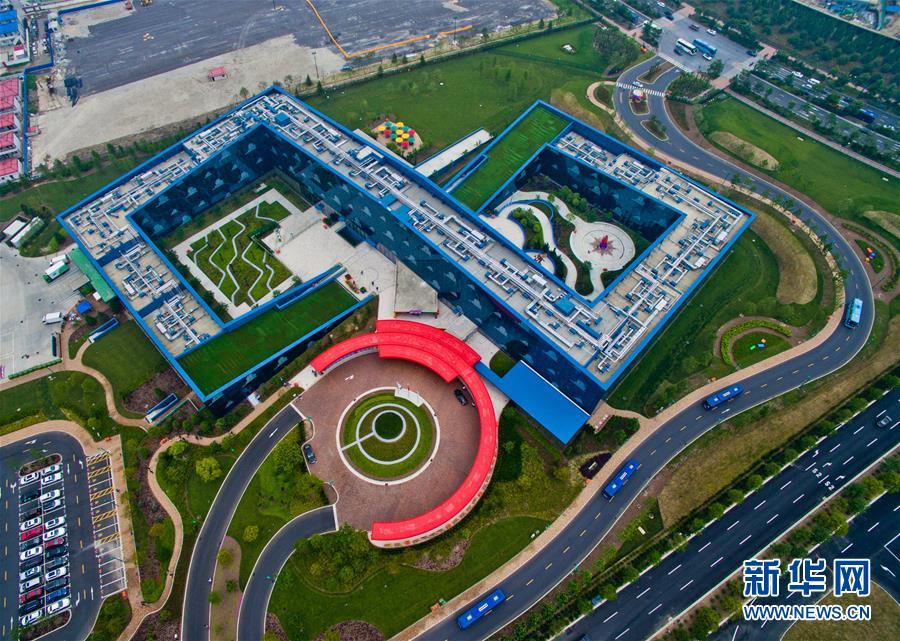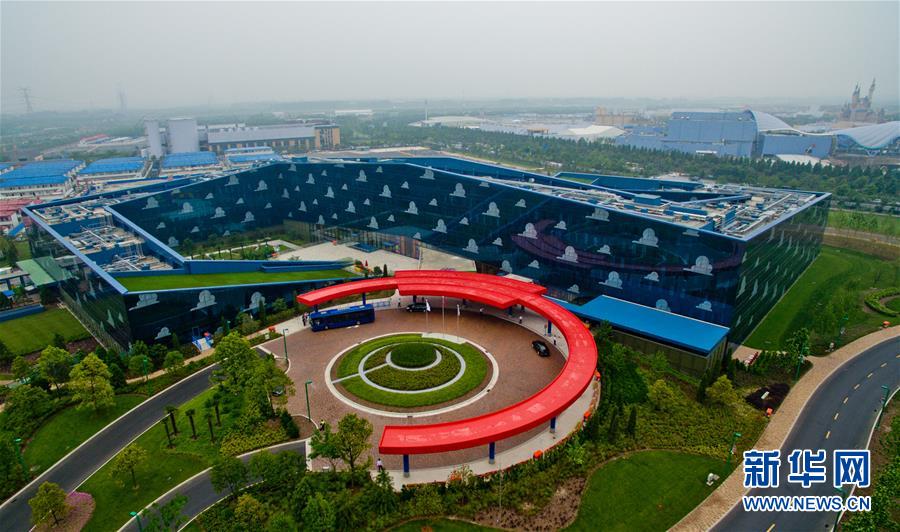 5月15日從空中俯瞰上海迪士尼玩具總動(dòng)員酒店。當(dāng)日,上海迪士尼主題酒店之——玩具總動(dòng)員酒店大堂、廣場、餐廳、度假區(qū)短駁車等區(qū)域及設(shè)施開始內(nèi)部測試。這家共有800個(gè)房間的主題酒店將于6月中旬正式迎客。新華社發(fā)(鈕一新 攝)