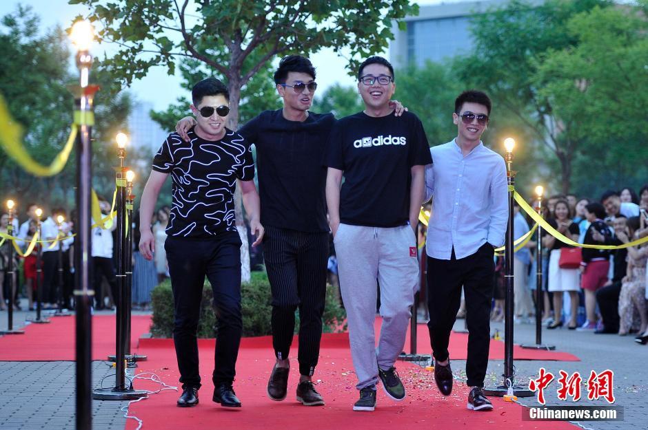 6月3日晚,山西大學美術學院畢業(yè)典禮,大學畢業(yè)生通過紅地毯走進會場,學弟學妹們夾道歡迎。當畢業(yè)生情侶一起走秀時,引起學弟學妹們一陣尖叫。韋亮 攝