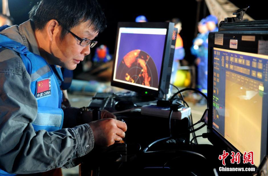6月7日凌晨,專家正在操作水下機(jī)器人對沉船內(nèi)部進(jìn)行查勘。當(dāng)日,四川廣元沉船事故救援現(xiàn)場,參與救援的水下機(jī)器人先后兩次下水,并通過攝像頭在翻沉的“雙龍”號船內(nèi)發(fā)現(xiàn)有遇難者以及一些漂浮物品。中新社記者 劉忠俊 攝
