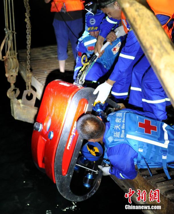6月6日,四川廣元沉船事故救援現(xiàn)場,參與救援的水下機(jī)器人先后兩次下水,并通過攝像頭在翻沉的“雙龍”號船內(nèi)發(fā)現(xiàn)有遇難者以及一些漂浮物品。圖為救援人員將水下機(jī)器人抬放入水。中新社記者 劉忠俊 攝