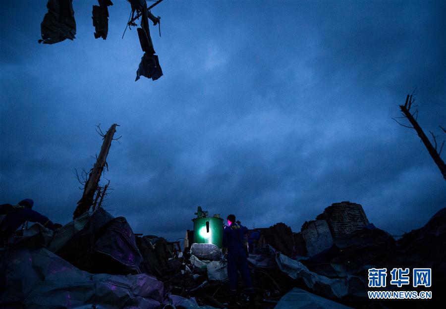 黎明時分,搜救人員繼續(xù)在江蘇省鹽城市阜寧縣受災(zāi)地區(qū)對廠房、民居等展開全面排查搜尋,營救受災(zāi)群眾。23日下午,江蘇省鹽城市阜寧縣、射陽縣部分地區(qū)突發(fā)龍卷風(fēng)冰雹嚴(yán)重災(zāi)害,多個鄉(xiāng)鎮(zhèn)受災(zāi),造成大量民房、廠房、學(xué)校教室倒塌,部分道路交通受阻。據(jù)初步統(tǒng)計,已造成78人死亡,約500人受傷。