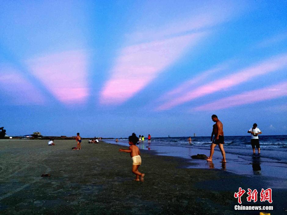 6月27日,廣西北海僑港海灘現(xiàn)晚霞奇觀。受副熱帶高壓影響,廣西連日持續(xù)高溫天氣,而高溫“燒”出的晚霞美景美不勝收,不少市民和游客趁傍晚時間趕海消暑,欣賞迷人晚霞。據(jù)廣西氣象臺預(yù)計,未來幾天高溫持續(xù),28日將進入本次高溫的最強階段。中新社記者 翟李強 攝
