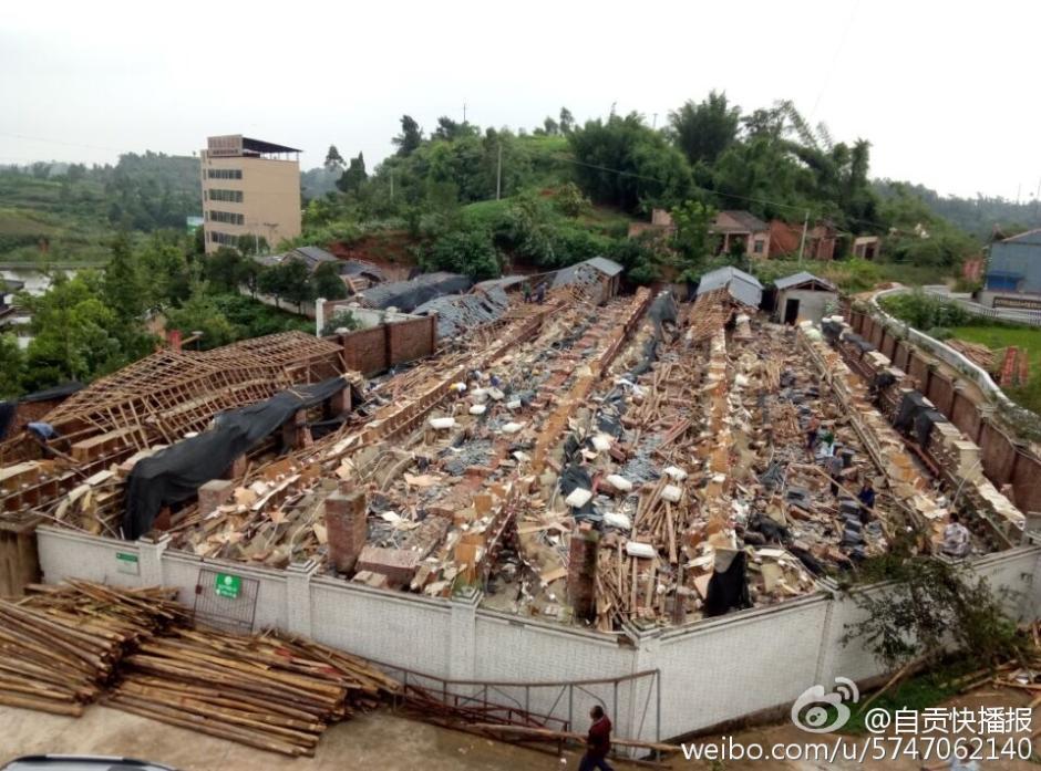7月12日凌晨5時(shí)許,陣性大風(fēng)突襲四川自貢榮縣古文鎮(zhèn),風(fēng)災(zāi)使古文鎮(zhèn)山邊村鄉(xiāng)巴佬養(yǎng)殖基地6000平米兔舍垮塌,事發(fā)時(shí),該兔舍共有26000只兔子。記者在現(xiàn)場(chǎng)看到,兔舍頂棚已經(jīng)被完全吹跨,木制橫梁和隔板隨處散落,部分兔舍仍有大量兔子被埋,10余名工人正在清理現(xiàn)場(chǎng)和搶救活兔。據(jù)兔舍負(fù)責(zé)人介紹,經(jīng)過近30多小時(shí)生產(chǎn)自救已搶救出5000余只活兔,初步估計(jì)有10000余只兔子死亡,直接損失超過300萬元。(記者 曹實(shí)秋)圖片來源:華西都市報(bào)自貢城市頻道官方微博