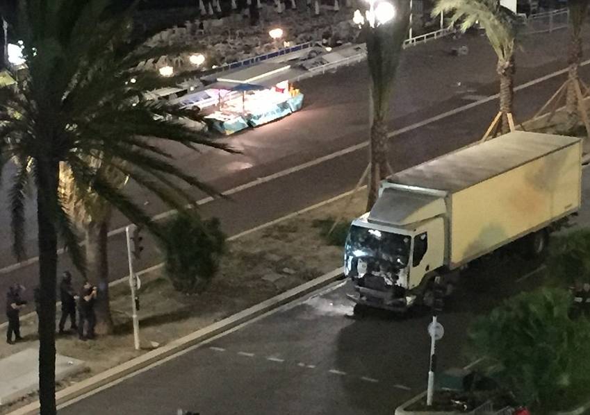 當(dāng)時人們正在當(dāng)?shù)乜礋熁鸨硌?,街上都是游人,一輛貨車以每小時60-70公里的速度沖向人群。據(jù)現(xiàn)場目擊者稱,期間還聽見數(shù)聲槍聲。