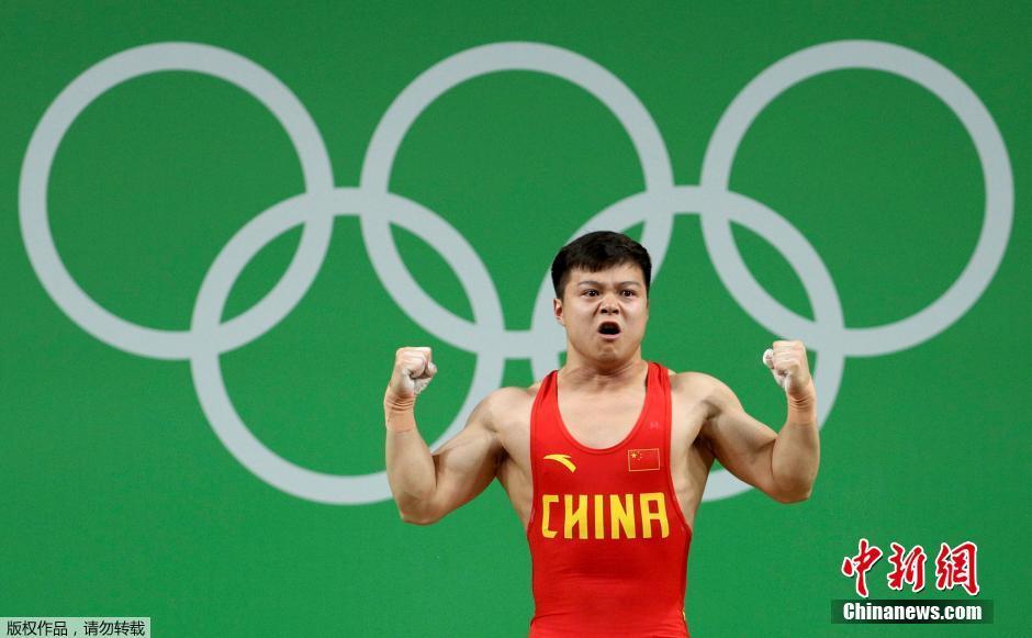 當?shù)貢r間8月7日,里約奧運會男子舉重56公斤級比賽舉行,北京奧運會該項目冠軍中國選手龍清泉破世界紀錄再次摘金,為中國代表團再添一枚金牌。圖為龍清泉在抓舉比賽中。