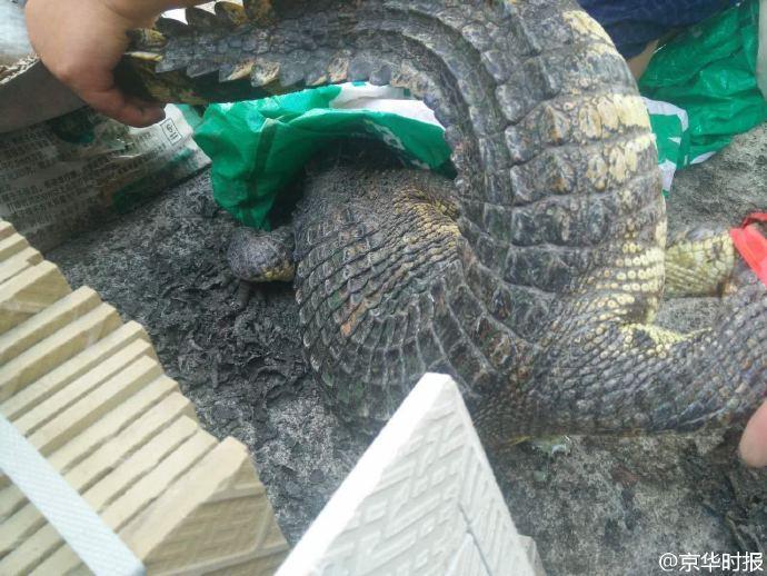 后來(lái)了解到,她家樓上5樓一住戶家里養(yǎng)了2條鱷魚,昨晚其中一條從窗戶逃跑了。