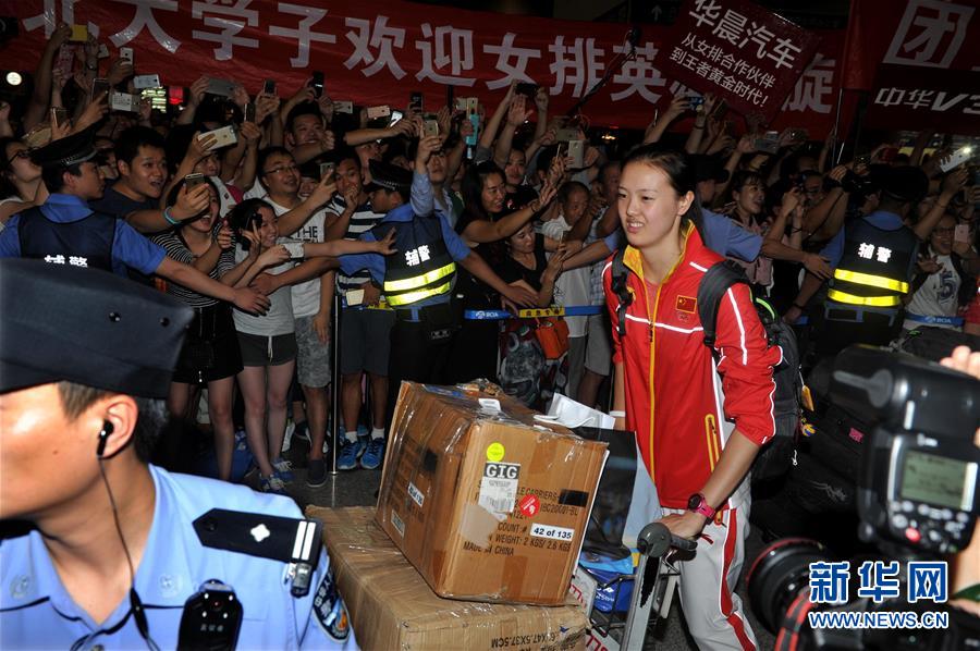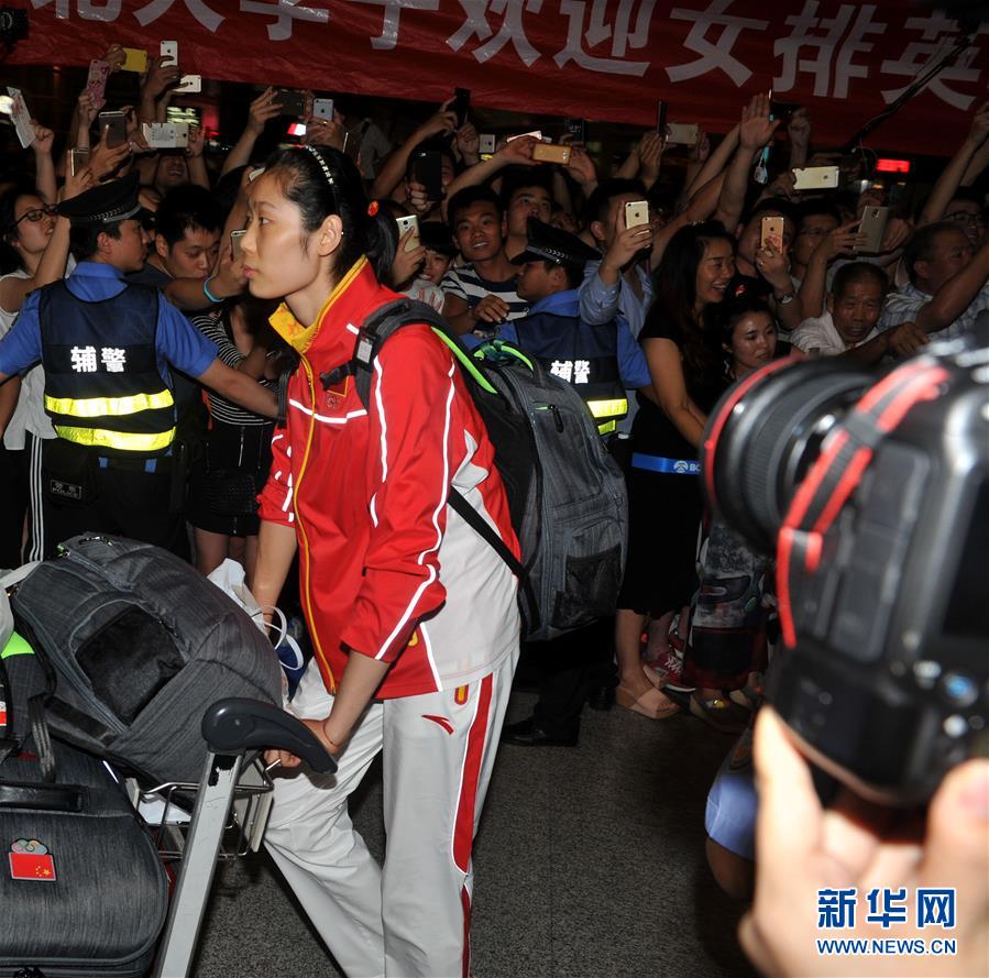 8月23日,中國女排隊(duì)員徐云麗抵達(dá)北京首都國際機(jī)場(chǎng)。當(dāng)晚,在里約奧運(yùn)會(huì)獲得金牌的中國女排回國。 新華社記者陳曉偉攝