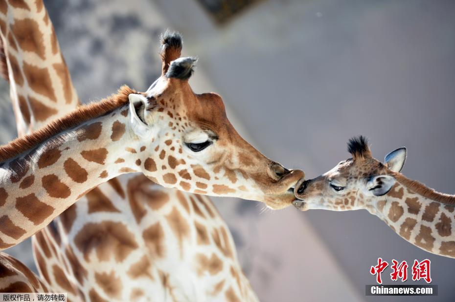 法12歲長(zhǎng)頸鹿誕下“寶寶” 垂眼吻子母愛(ài)濃