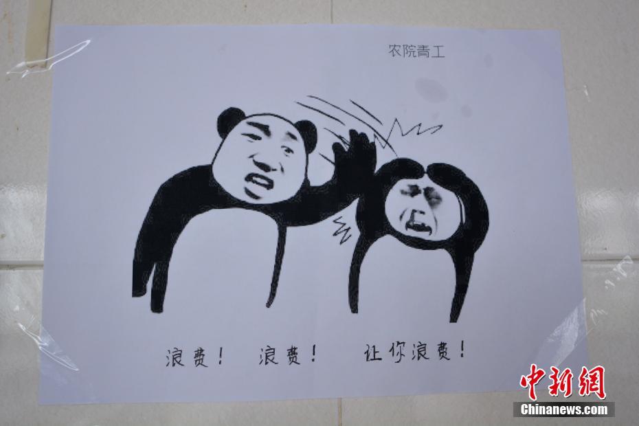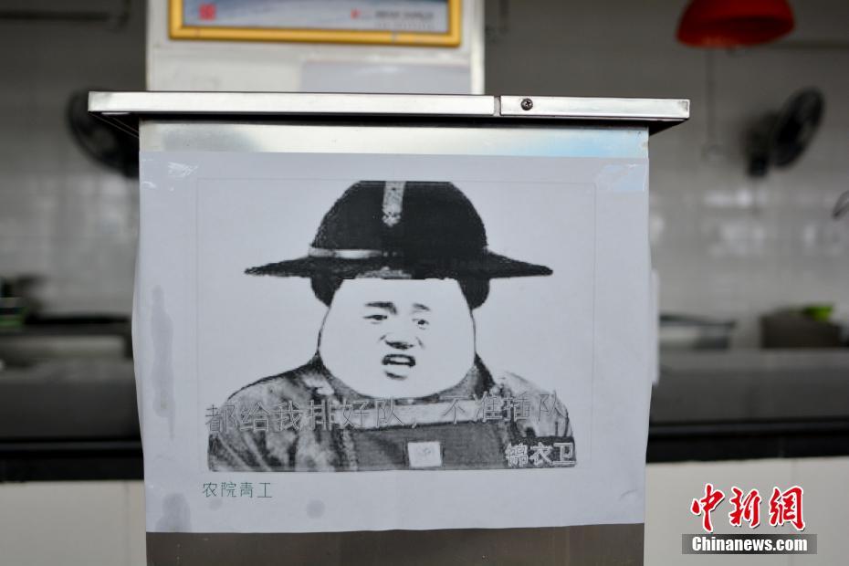 近日,四川農(nóng)業(yè)大學食堂的“魔性”表情包告示牌在網(wǎng)絡走紅。告示牌上除了夸張的“魔性”圖案,還配有“吃完盤中餐,不做剩男剩女”、“敢在食堂撒野”、“默默吃著飯”等文字。四川農(nóng)業(yè)大學工作人員介紹,這組魔性表情包告示牌由該校農(nóng)學院同學們自發(fā)創(chuàng)作張貼,目的是為了讓同學們不要浪費糧食,注意排隊。 四川農(nóng)業(yè)大學供