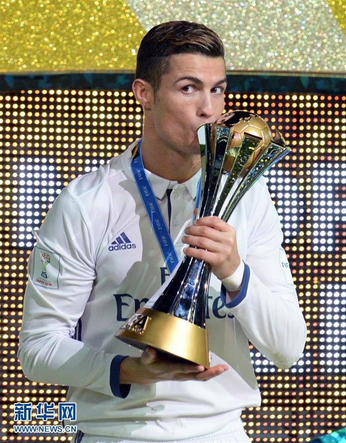 12月18日,皇家馬德里隊(duì)球員克里斯蒂亞諾·羅納爾多在本場比賽中上演“帽子戲法”,獲得世俱杯金球獎(jiǎng)。新華社記者馬平攝