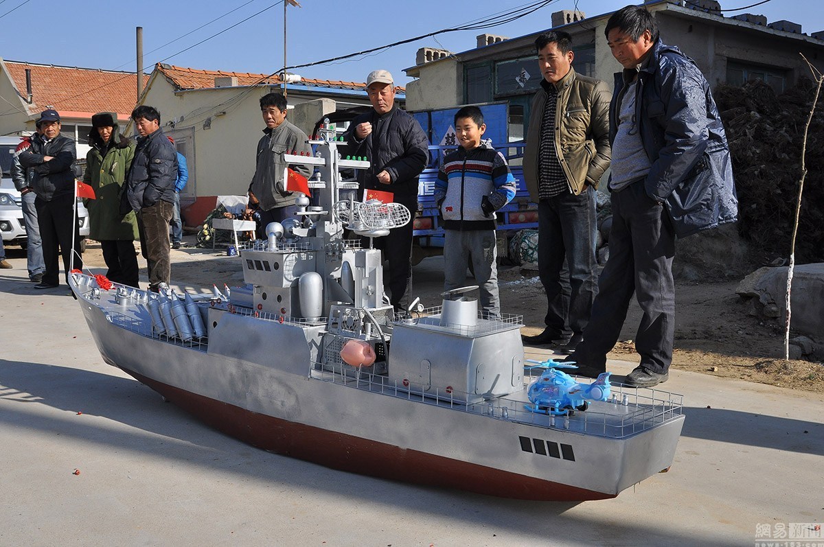 十幾年來,他先后成功的造出了“導(dǎo)彈驅(qū)逐艦”2艘,“巡洋艦”4艘,“導(dǎo)彈護(hù)衛(wèi)艦”1艘。2014年12月13日,郭長海將半年時間打造的新作“導(dǎo)彈護(hù)衛(wèi)艦”拉到村里的大街上向村民展示,這艏長3.07米,高1.2米,寬約0.8米的“導(dǎo)彈護(hù)衛(wèi)艦”在他的遙控指揮下,成功實(shí)現(xiàn)了陸地上的前進(jìn)、后退、左右拐彎,并可模擬槍炮發(fā)射火藥的效果。為了驗證水上功夫,2015年8月13日,郭長海在日照奧林匹克水上公園龍舟碼頭,為“導(dǎo)彈護(hù)衛(wèi)艦”進(jìn)行試航,經(jīng)過半個多小時的調(diào)試,最終試航成功。連續(xù)兩年在眾人面前的試驗,均獲得成功,這大大增強(qiáng)了他的信心。