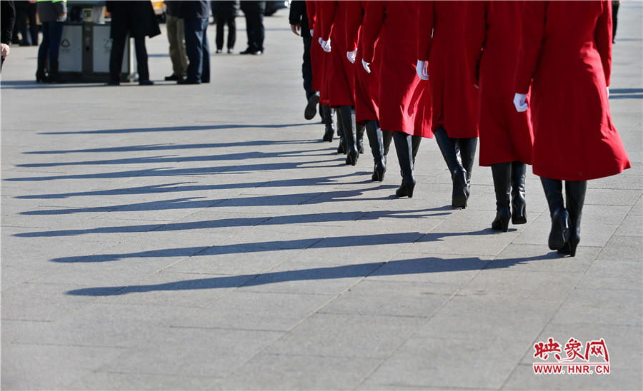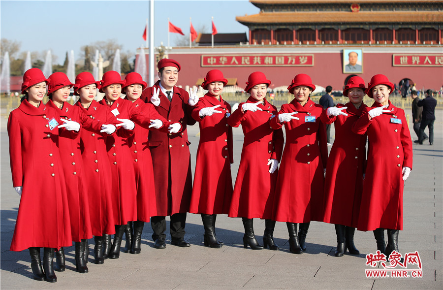 映象網(wǎng)北京訊(大象融媒飛象隊記者 段晉哲 文/圖)2017年3月5日,第十二屆全國人大五次會議在人民大會堂召開。場外的記者、安保人員、服務(wù)人員、保潔人員等都用自己的方式參與其中。他們在天安門廣場上和人民大會堂前,都留下了自己最美麗的身影。