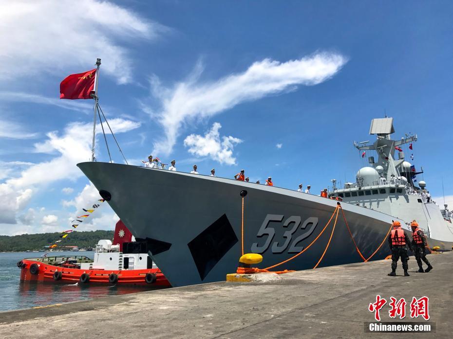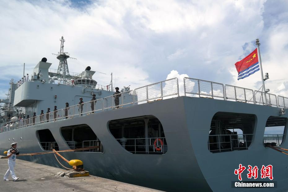 4月30日,由導(dǎo)彈驅(qū)逐艦長春艦、導(dǎo)彈護衛(wèi)艦荊州艦和綜合補給艦巢湖艦組成的中國海軍艦艇編隊抵達菲律賓南部達沃市訪問,受到熱烈歡迎。這支艦艇編隊4月23日從上海黃浦江畔啟航,將赴亞洲、歐洲、非洲和大洋洲20余個國家進行友好訪問,菲律賓是首站。圖為荊州艦靠岸。 中新社記者 張明 攝